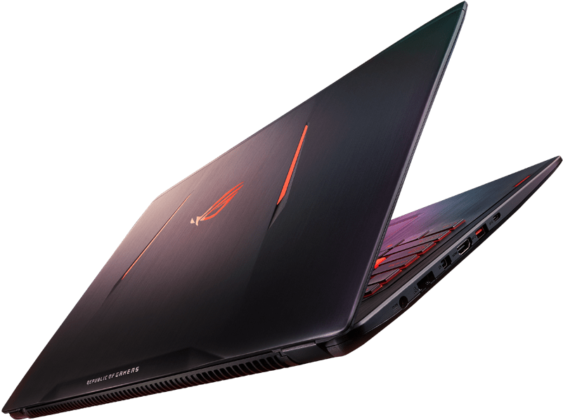 ROG Strix GL520 yang dibalut warna hitam dengan desain orange pada logo ROG menjadikan notebook ini terlihat elegan ditambah lagi panel aluminium pada cover notebook ini yang memberikan pantulan cahaya berkilau untuk menambah kesan mewah, dengan ketebalan 3cm dan berat hanya 2,3kg menjadikan Asus ROG Strix GL502 Notebook Gaming tertipis dikelasnya.